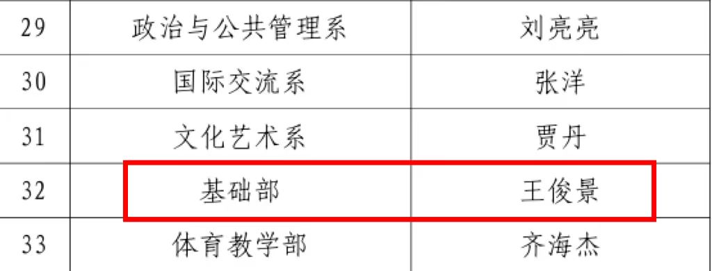 此项荣誉是对王老师个人专业成长的肯定,也展现了基础部在人才培养和梯队建设方面的持续努力。