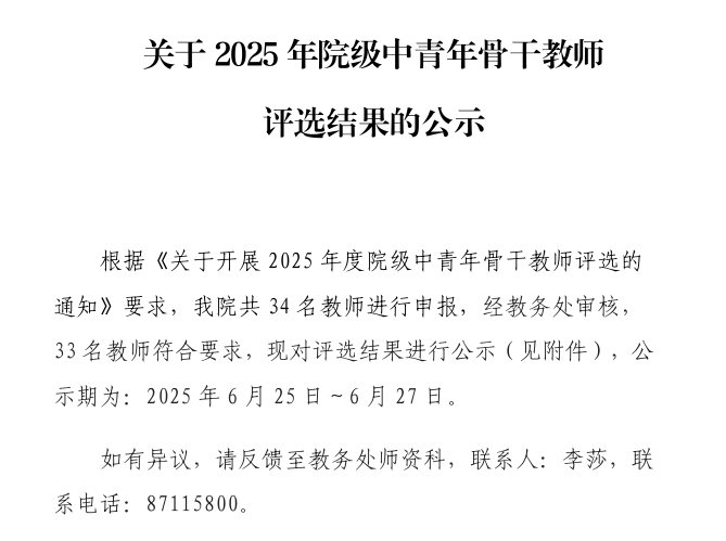 在2025年度院级中青年骨干教师评选中,基础部王俊景老师凭借其扎实的专业功底、突出的教学科研能力与良好的师德师风,成功获评。